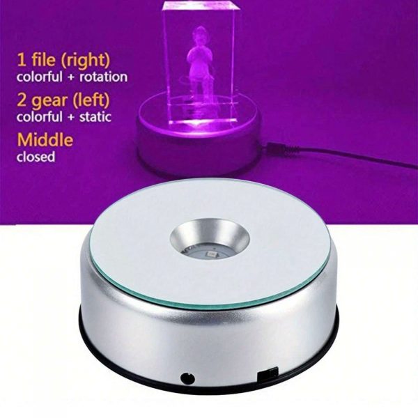 LED Rotating Display Base For Crystals Glass Art, Colorful Light Rotating Crystal Display Base Stand, Cup Display Stand Turner For Tumbler Cup
